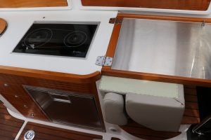 Denna version har en stor akterplattform för solbad, ett dolt ankarutrymme och intelligent förvaring för fendrar och grill. En viktig utveckling var utbyggnaden av badplattformen, som bygger på de populära tidigare modellerna som Aquador 26 HT.