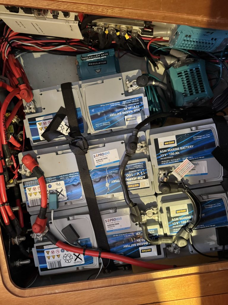 Nya batterier; 4 start (4*100Ah AGM) och 1 motor (1*90Ah AGM)