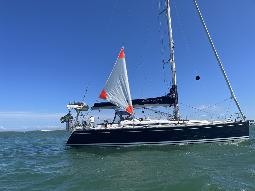 Så här beskrivs båtmodellen av Arcona i UK: ”The 430 was the 2009 European Yacht of the Year, applauded as the ideal cruiser-racer, combining race-winning speed and heart warming comfort.”