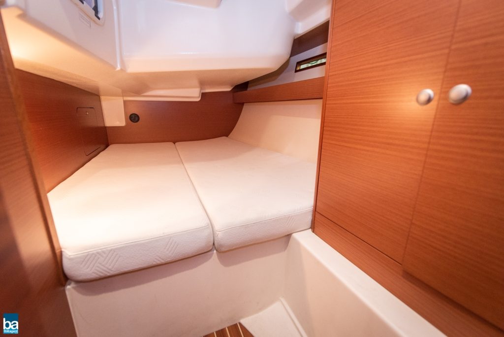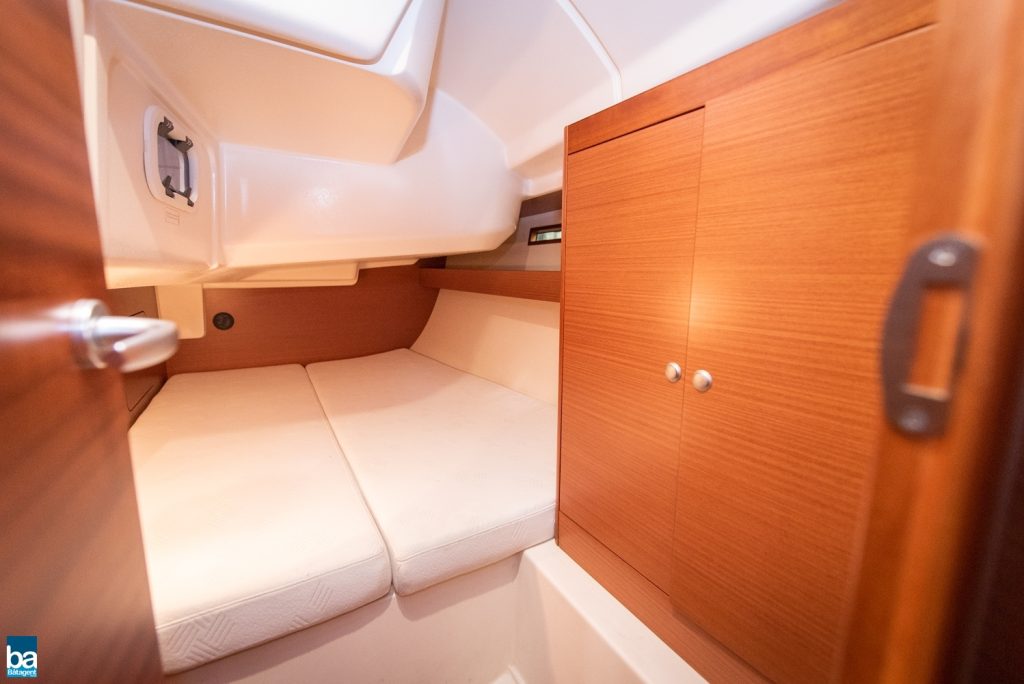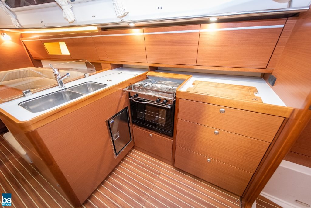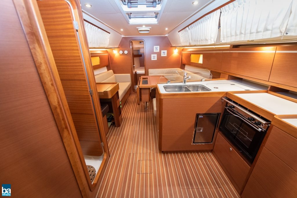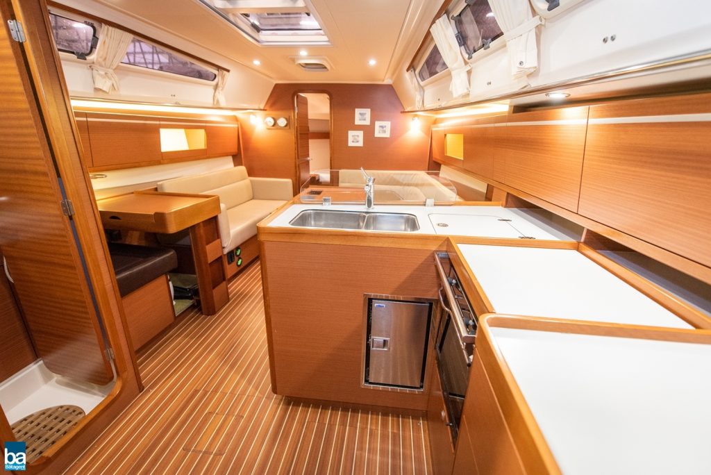 Under däck finns en ljus och trevlig inredning, anpassad för att hela familjen ska få gott om plats under långa semestrar på havet. Båten har 3 kabiner med en dubbelkoj i vardera kabinen. Ett pentry som räcker och blir över för att brassa mat till en hungrig besättning. Vidare finns ett toalettutrymme med en tystspolande el-toalett och inte minst den rymliga salongen midskepps.