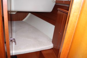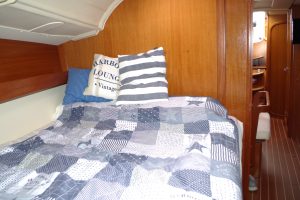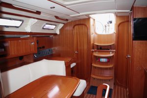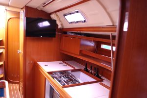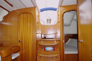 Båden er en 3-kahyt version med 1 toilet agter. Med hensyn til 1 toiletrum har båden en mere rummelig master kahyt i stævnen og med en større dobbeltkøje. En rummelig salon med et stort pantry langskib i bagbords side. Alt i alt en rummelig båd med en gennemtænkt indretning, hvor apteringen er udført i kirsebærfiner.