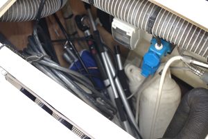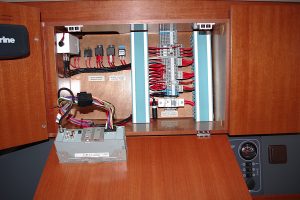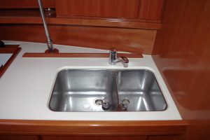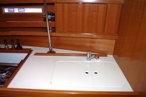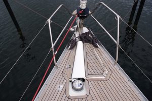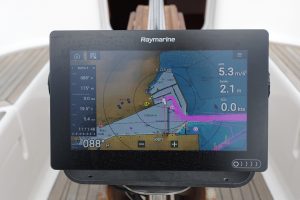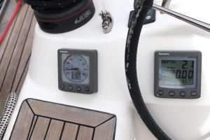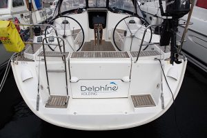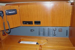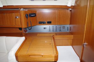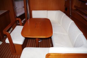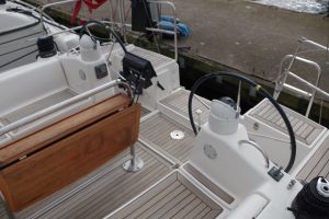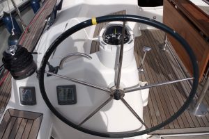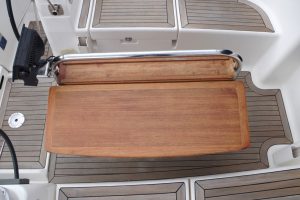 Bådens cockpit er rummeligt og takket være de 2 rat og det stationære cockpitbord bidrager det til et behageligt ophold og gode adgangsforhold samt et godt flow i cockpittet.