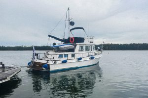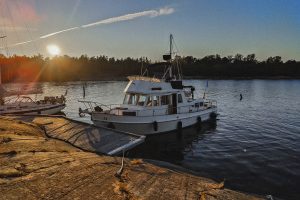 Denna Grand Banks 36 är i varmt vinterförvar i Pargas samt har hamnplats i Nagu, ca. 2,5 timmar väst från Helsingfors – Finland.