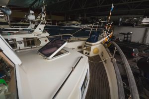 Den rymliga flybridge är en fantastisk plats för besättningen att njuta då vädret tillåter och ger även skepparen ännu bättre sikt vid hamnmanövrar.