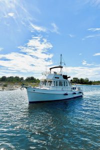 Grand Banks 36 är överraskande enkel att manövrera i hamnar tack vare den långa kölen, dubbla motorer samt en kraftig bogpropeller.