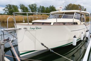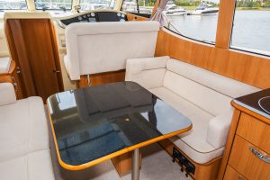 Salongen rymmer ett större sällskap för middag eller samkväm, och från akterdäck fäller man enkelt ner badbryggan.