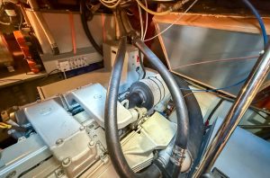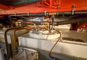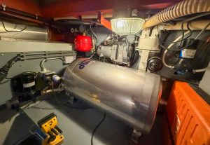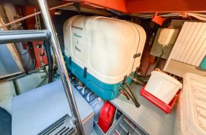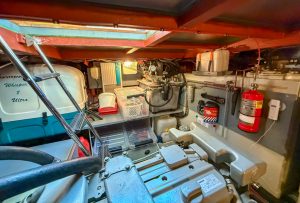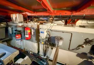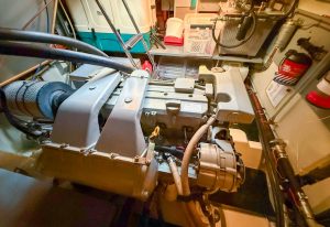 Under salongen ligger det imponerande motorrummet som nås via en lucka och en stege. I motorrummet finns givetvis motorn, en Vetus Deutz på 140 Hk, men också de flesta installationerna i båten. Båten ha ett genset från Mastervolt och uppvärmning via vattenradiatorer från Eberspächer. Här kommer man även åt bränslesystemt som precis som det mesta annat ombord är mycket genomtänkt.