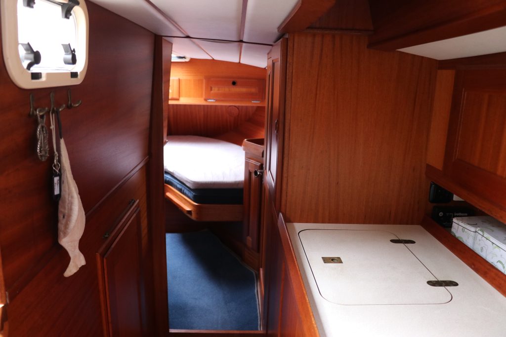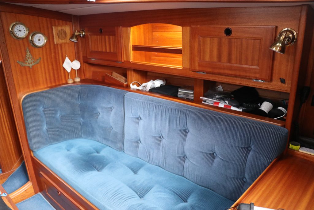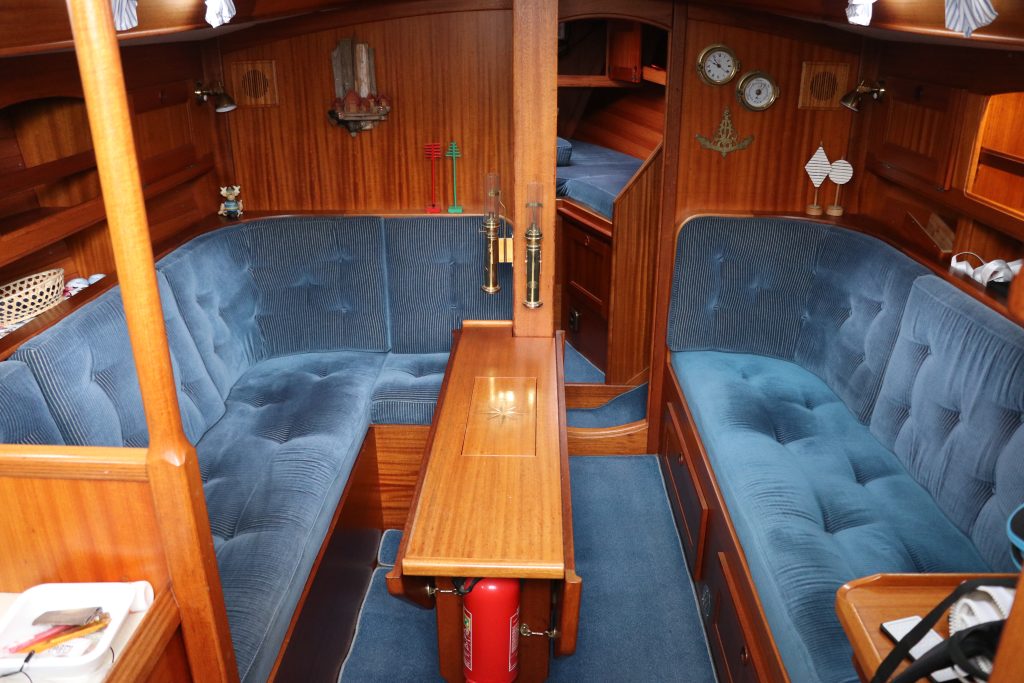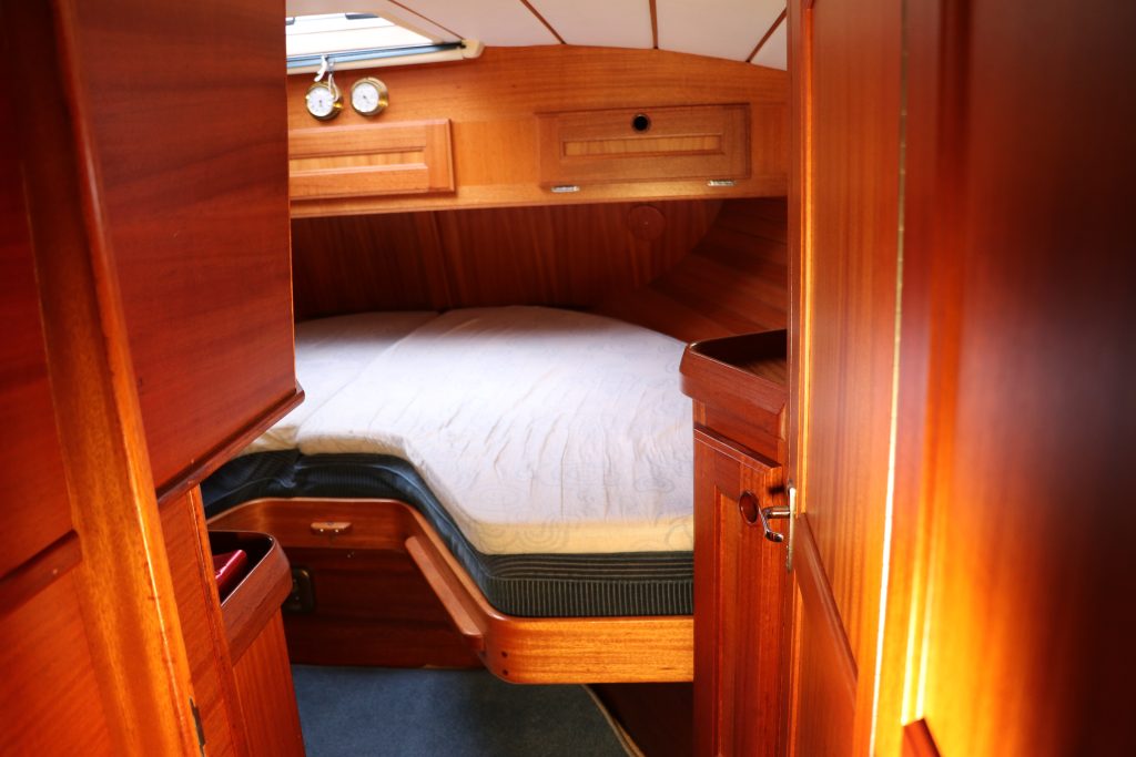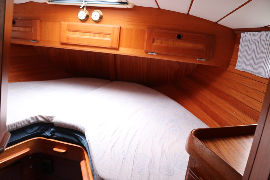Under däck hittar du den klassiska interiören med en trevlig privat hytt akterut. Ett generöst pentry på babord sida, lämpligt för både navigering och babord. Vardagsrum med hög komfortfaktor och god sittkomfort. Längst fram finns även en stor dubbelhytt. Till styrbord, nedanför trappan, en centralt placerad toalett. Båten är lättmanövrerad på nedre och övre däck, även vid segel. Alla utrymmen under däck är välutnyttjade och båten har många smarta förvaringslösningar.