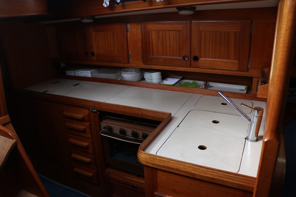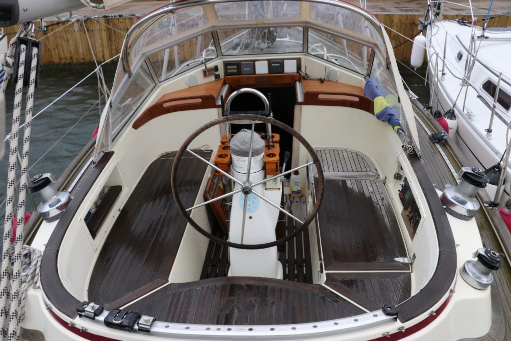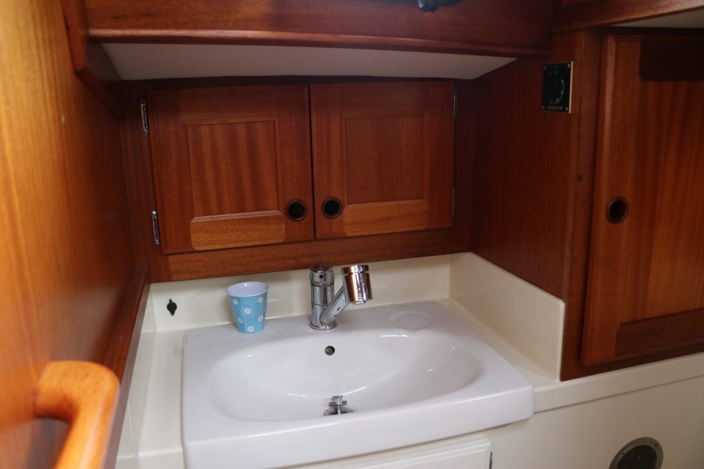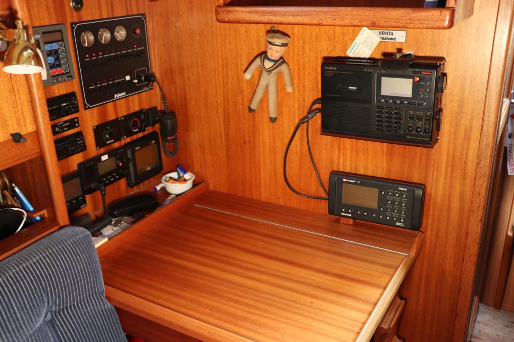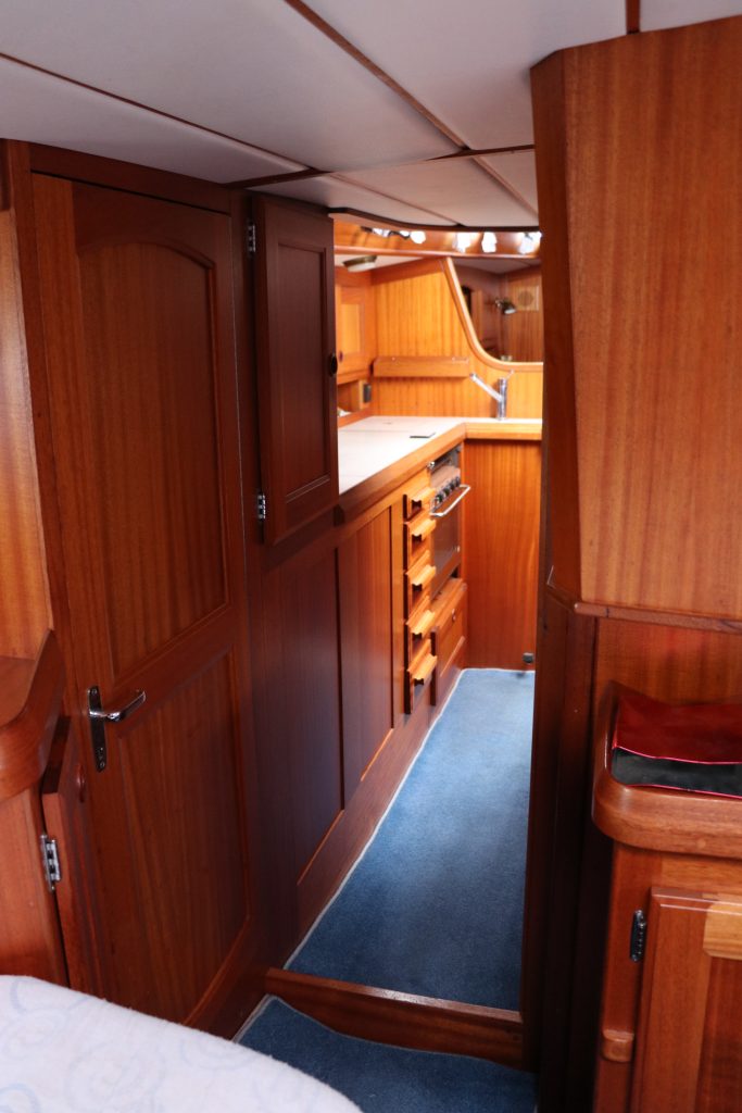 Under däck hittar du den klassiska interiören med en trevlig privat hytt akterut. Ett generöst pentry på babord sida, lämpligt för både navigering och babord. Vardagsrum med hög komfortfaktor och god sittkomfort. Längst fram finns även en stor dubbelhytt. Till styrbord, nedanför trappan, en centralt placerad toalett. Båten är lättmanövrerad på nedre och övre däck, även vid segel. Alla utrymmen under däck är välutnyttjade och båten har många smarta förvaringslösningar.