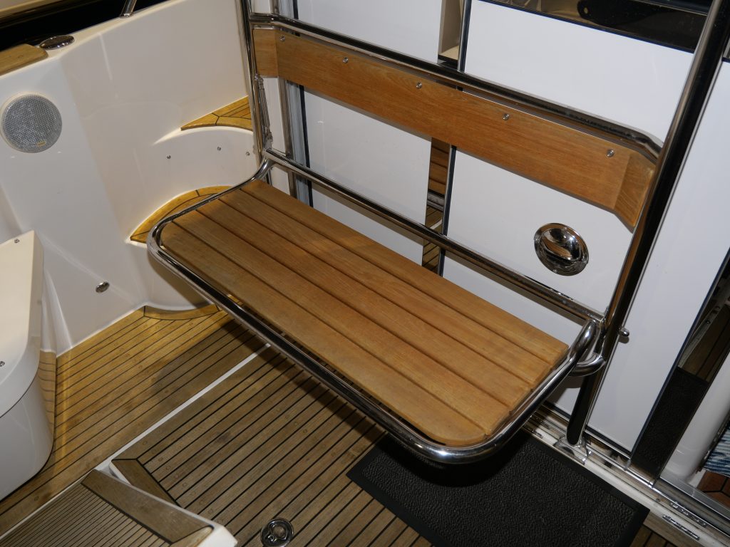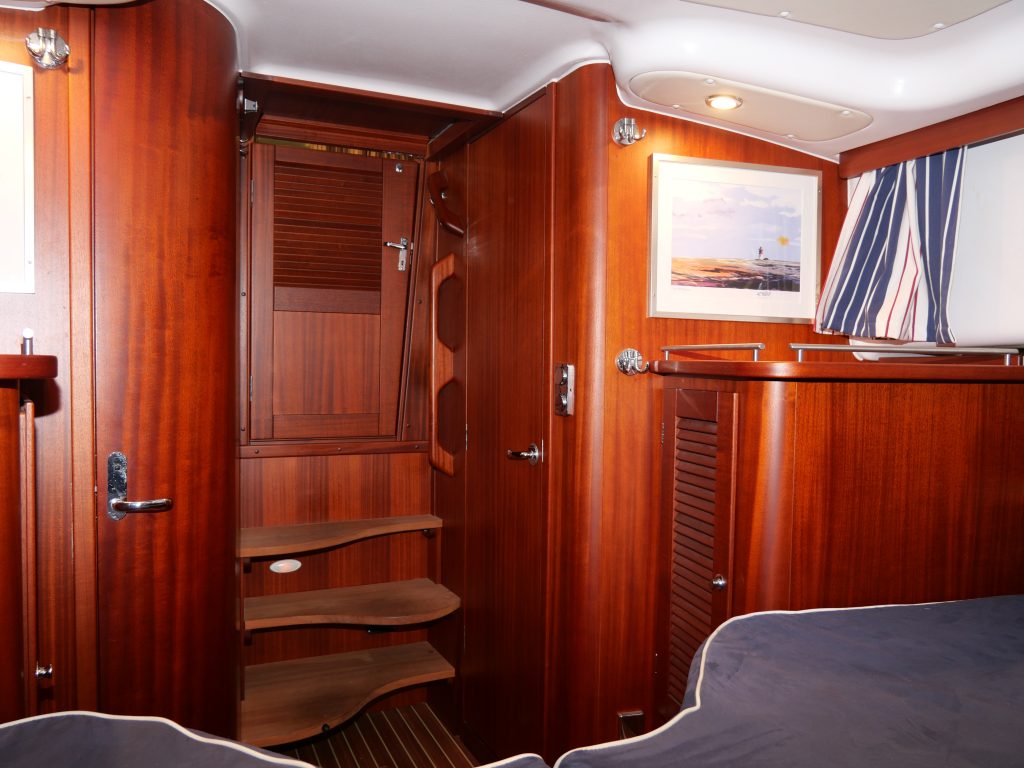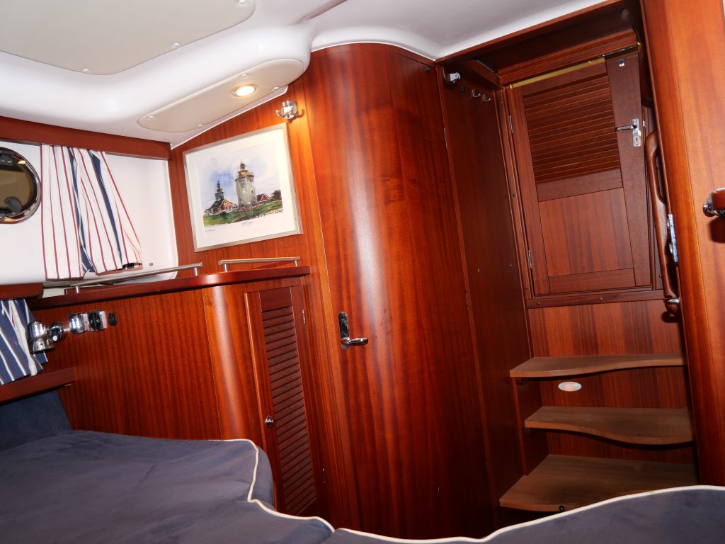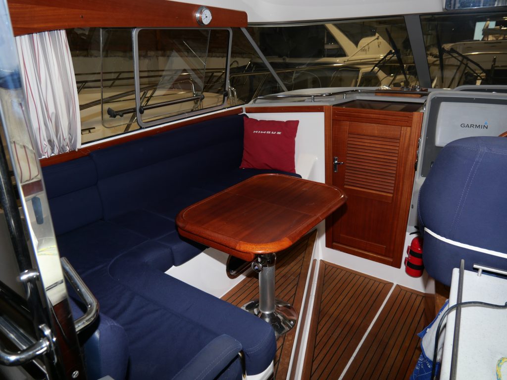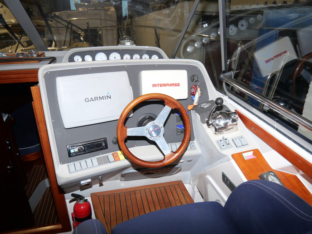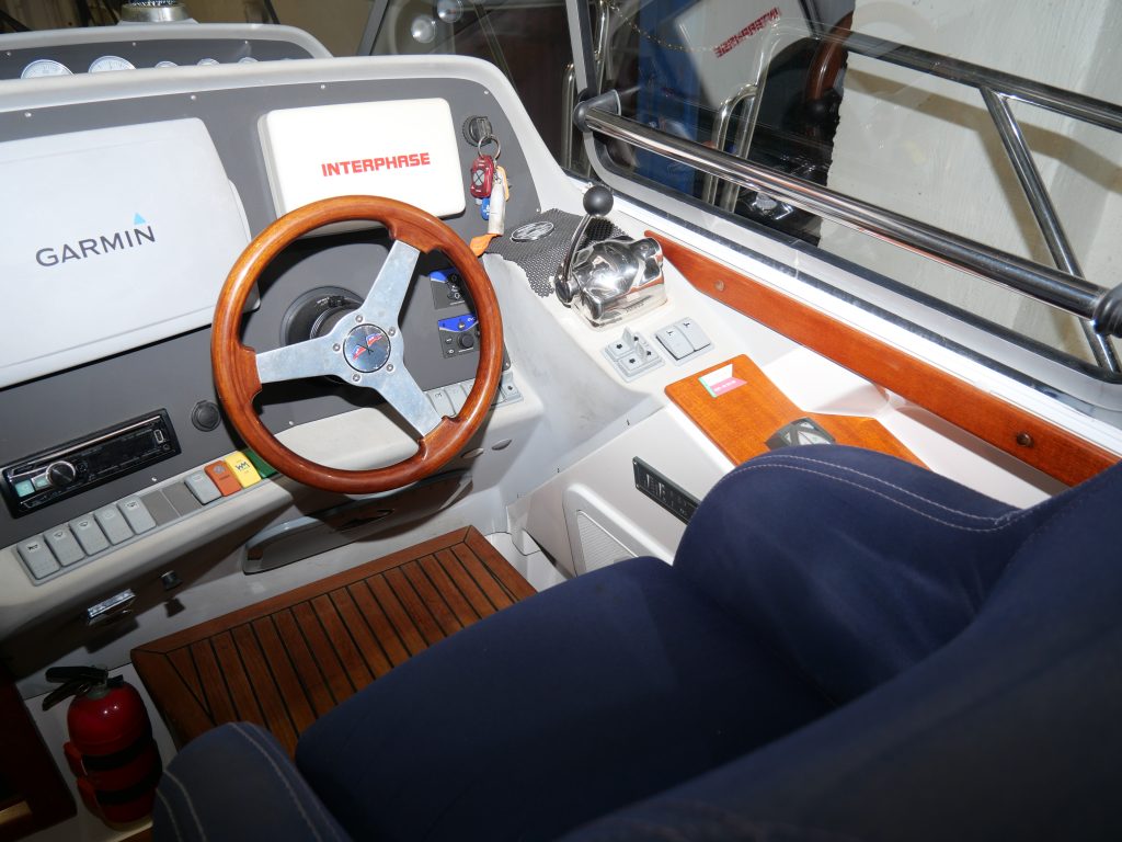 Stor härlig dubbel koj föröver och en dubbel koj på babord sida i ruffen. Toalett med dusch. Salongen har u-soffa om babord med 360 graders panorama utsikt och på styrbord har man förarplatsen och pentry akter om den. Härligt stort akterdäck som kan kläs in med kapell när man önskar det . Båten levereras vår utrustad och sjösatt. Delar av utrustningen är dubbla ankarspel, bogpropeller, livflotte Se hela utrustningslistan i PDF filen. Båten finns med för visning på Öppet Varv i Ellös