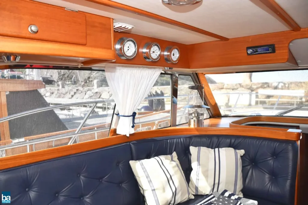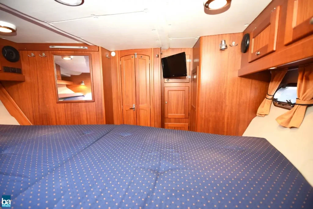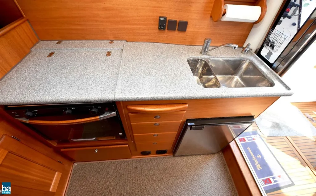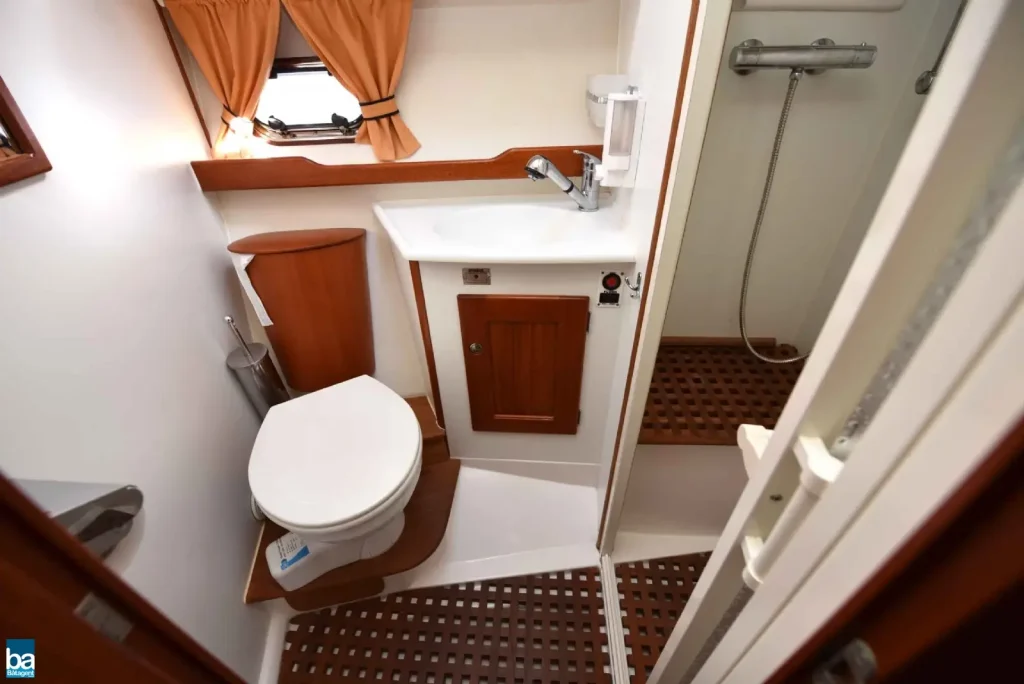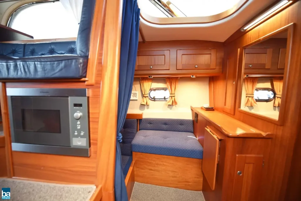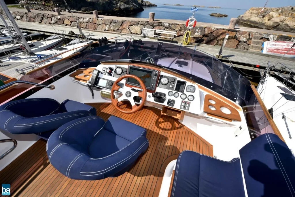 Tv med hiss, Corianskiva i pentry, skinnklädsel i salong, el toalett gör att allt känns ännu lyxigare i denna fina och välskötta båt. Båten levereras vår utrustad och sjösatt våren 2025.