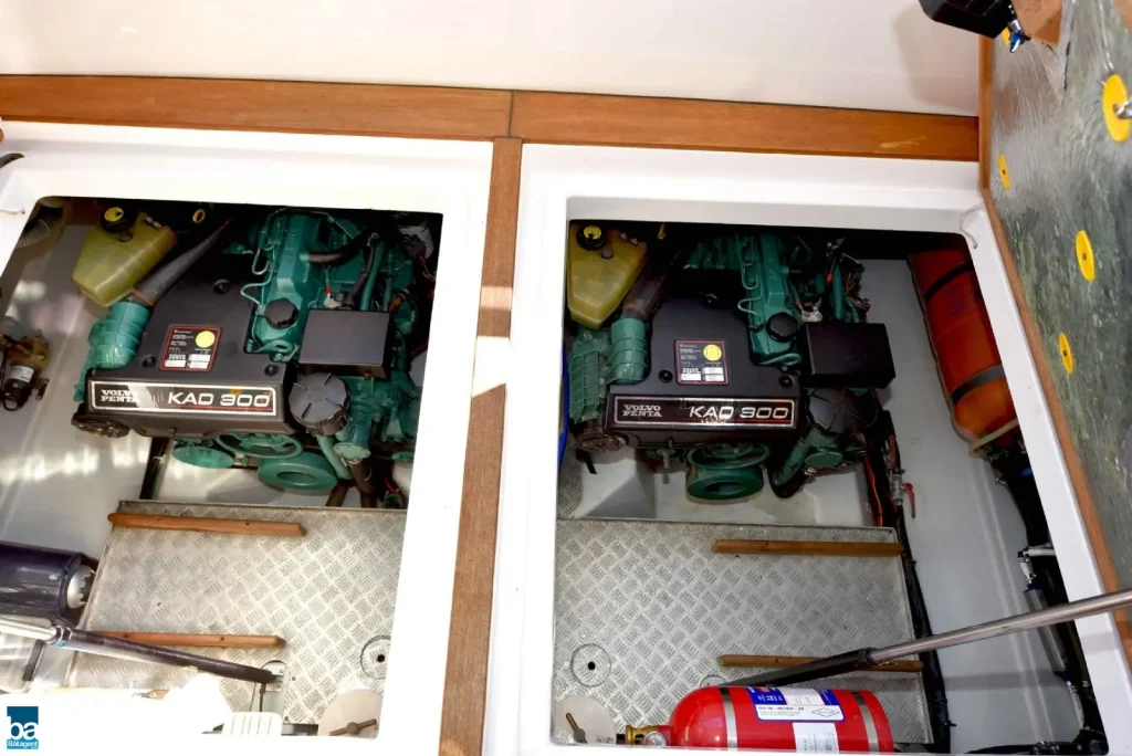 2 Volvo Penta Kad 300 varav den ena är en ny utbytes motor och den andra väl servad samt 2 nya turbo allt detta bytt 2024 med endast 50 gång timmar Övrigt så är båten välutrustad med allt man önskar ombord. Båten förvaras inomhus i varm hall och har dom senaste åren gått i sötvatten.