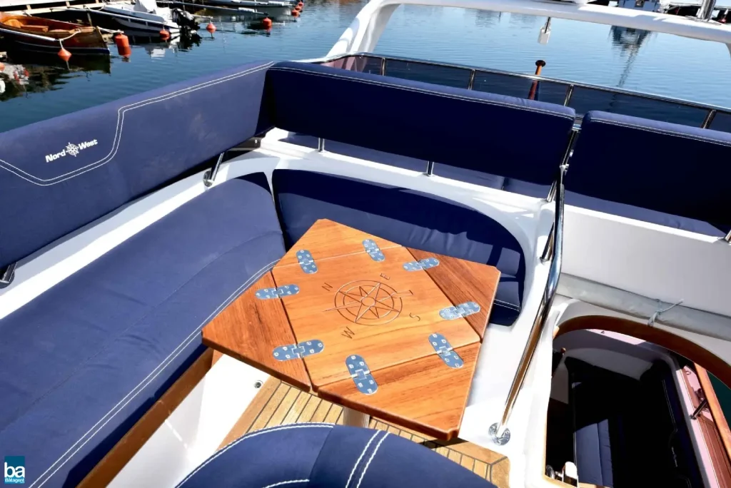 Nord West 390 lanserades år 2000 och blev omgående en säljsuccé från NordWest varvet. Snygga linjer, bra sjö egenskaper, praktiskt layot både inne och ute och väldigt hög kvalité på utrustning och bygge gör denna båt till mångas favoriter i 40 fots klassen.