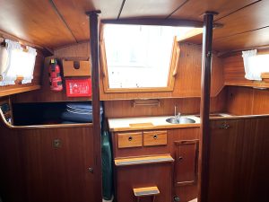 Totalt har båten 5/6 kojplatser medräknat sofforna i salongen där ryggstöden kan flyttas för att skapa fullstora kojplatser. Planlösningen är klassisk med en stickkoj direkt styrbord om nedgången och det L-formade pentryt om babord. Framför salongen ryms toaletten och ytterligare ett kliv föröver kommer man in i den främre kabinen med en dubbelkoj. Sittbrunnen är rymlig och trygg att sitta i.