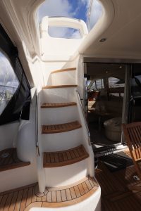 Princess 430 är utrustad med den kraftfullare och mer pålitliga Volvo Penta TAMD 73P med EDC styrning, som har 430 hk vardera. Den har en bog- och akterpropeller med fjärrkontroll och en mycket trevlig Benzoni-landgång, vilket säkerställer enkel åtkomst när båten ligger förtöjd akterut vid kajen.