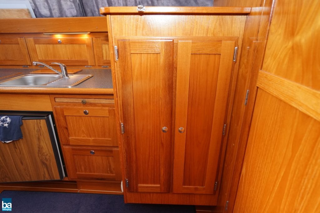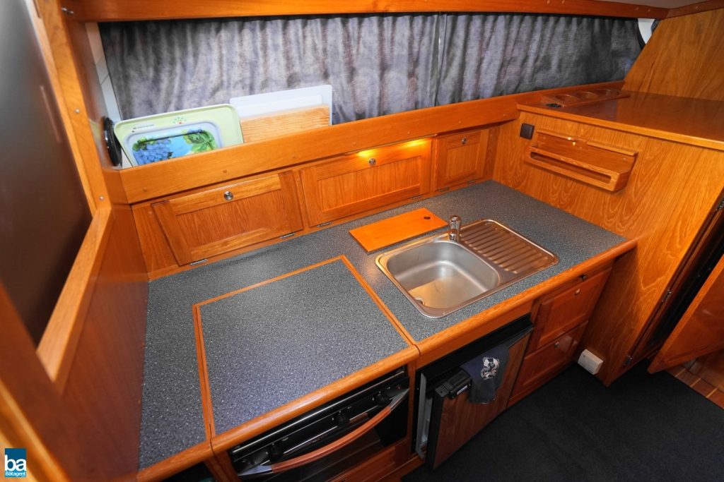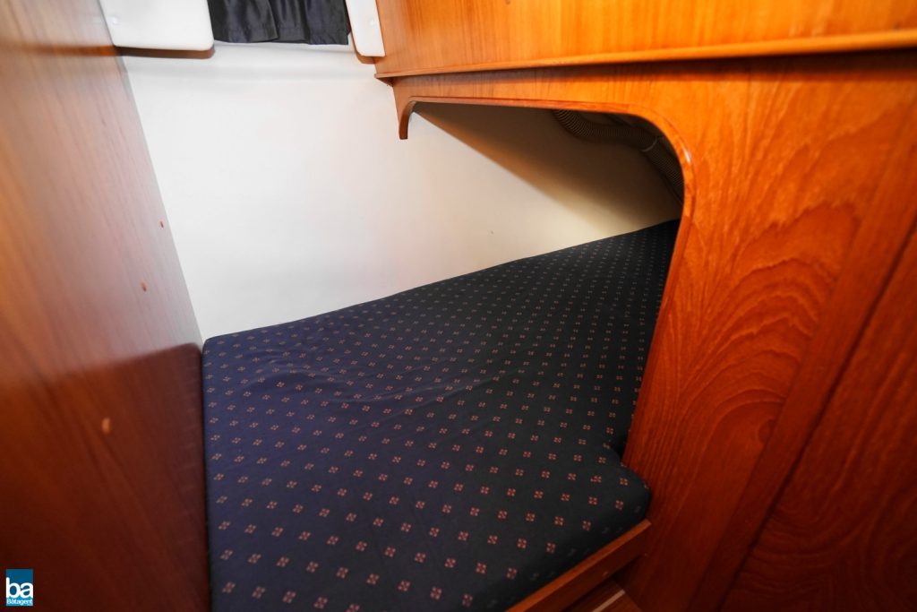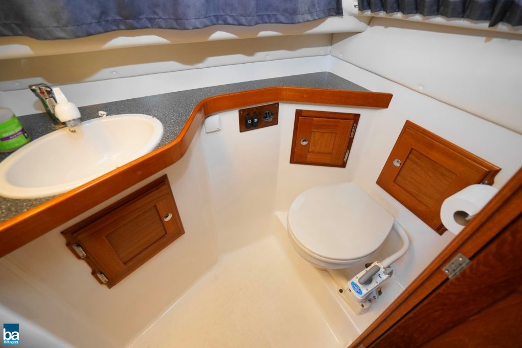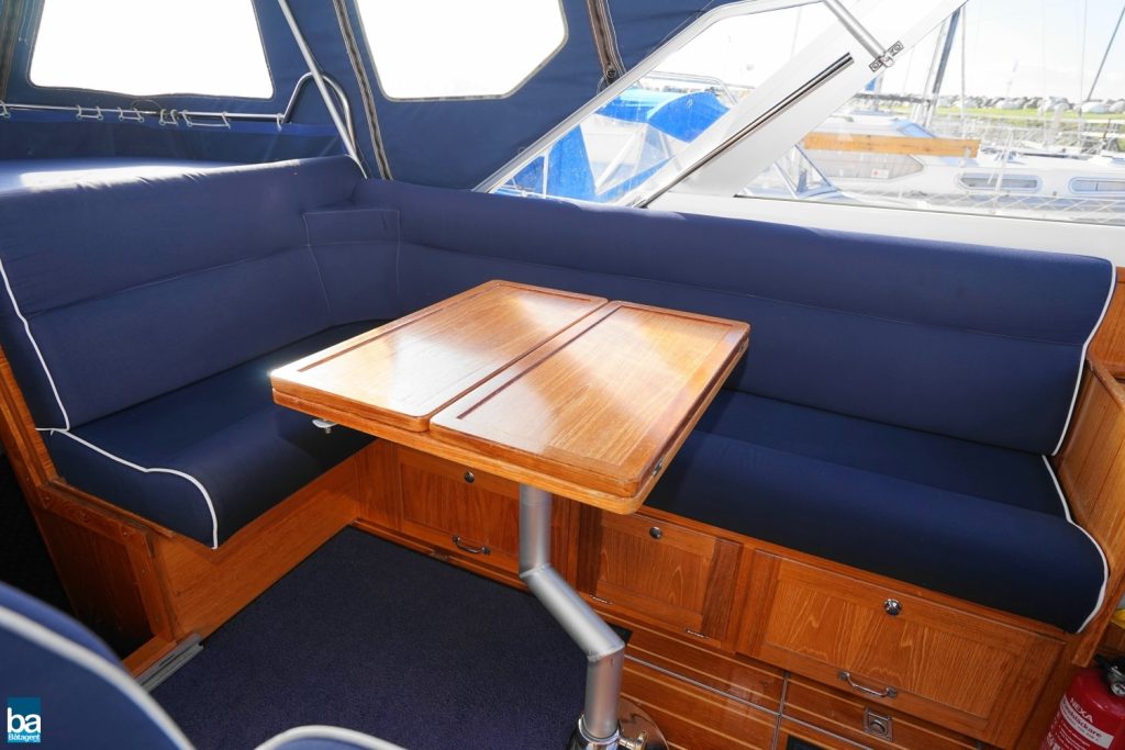 Förarplatsen är bekväm med höj/sänkbar stol och alla reglage och navigeringsutrustning väl synliga och åtkomliga. Panelen inrymmer en ny Garmin navigator, reglage för bog/akter propellrar och trimplan.