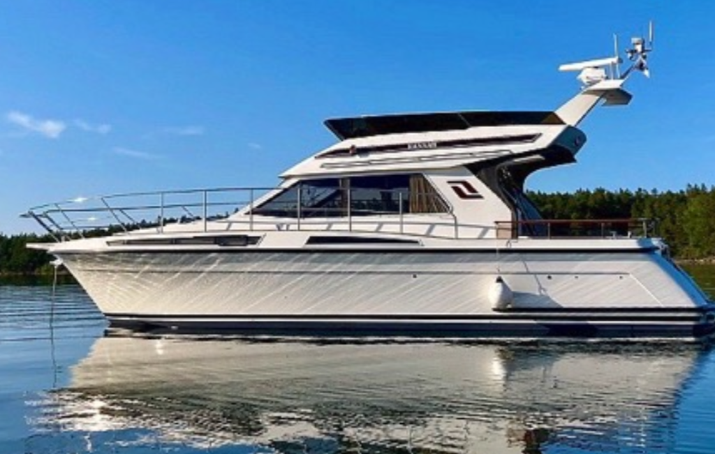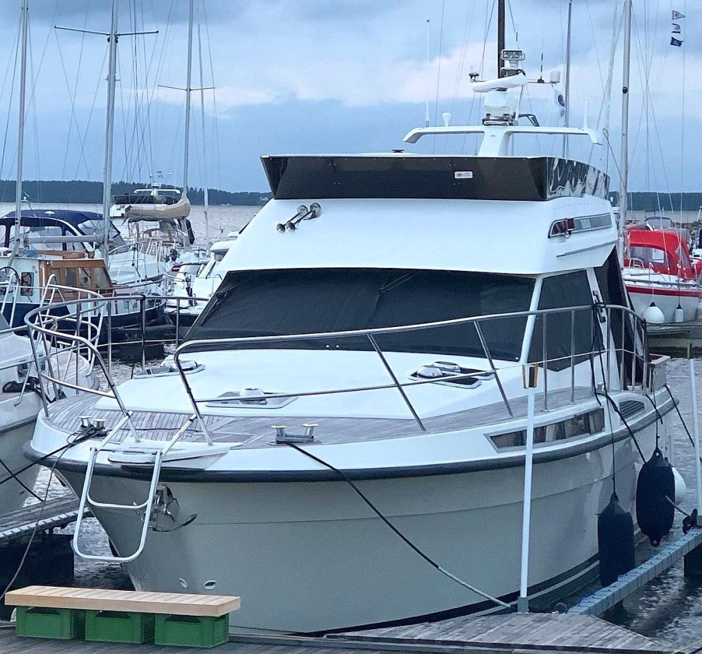 Storebro 420 Biscay är av många Storebro ägare flaggskeppet i varvets flotta! I ruffen har man 2 sovkabiner separat dusch och el toa med dusch samt ett stort pentry. I salongen har man ett ordentligt bord att umgås och spisa mat på med 360 graders panorama utsikt. Akterdäcket sitter man skyddat och härliga ytor att umgås och ett steg upp på flybridge styr man båten när vädret tillåter. Denna båt är väl känd bland Storebroägare och fantastiskt välunderhållen genom alla år. Den är utrustad för lång tid till sjöss då det finns både vatermaker och elverk ombord. 2 driftsäkra Volvo Penta motorer TAMD 72A med axel tar dig tryggt och säkert fram. Mars fart ligger på ca 7-8 knop medan toppfarten ligger på närmare 30 knop.