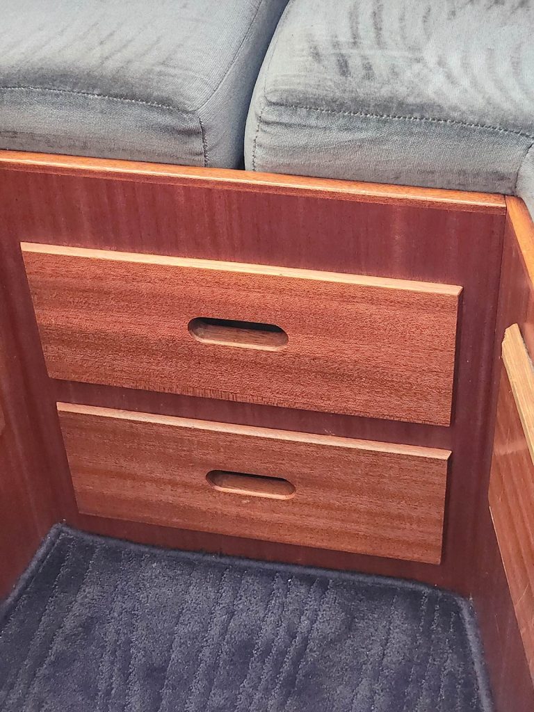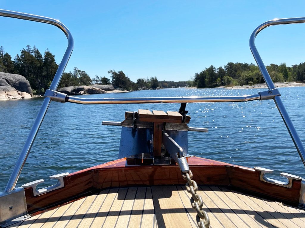 Båten har uppdaterats löpande, alla trädetaljer är slipat och lackat på varv 2021.
