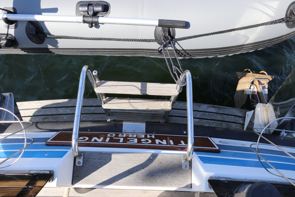 Badplattformen är lättillgänglig för att bada eller förankra aktern.
